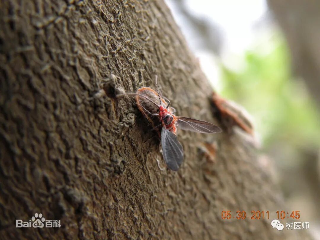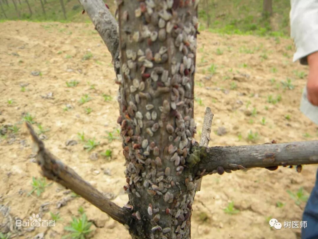 (1)成虫:雌成虫体长达10毫米左右,背面棕褐色,腹面黄褐色,被一层霜状蜡粉。触角8节,节上多粗刚毛;足黑色,粗大。体扁,沿身体边缘分节较明显,呈草鞋底状;雄成虫体紫色,长5~6毫米,翅展10毫米左右。翅淡紫黑色,半透明,翅脉2条,后翅小,仅有三角形翅茎;触角10节,因有缢缩并环生细长毛,似有26节,呈念珠状。腹部末端有4根体肢。 (2)卵:初产时橘红色,有白色絮状蜡丝粘裹。 (3)若虫:初孵化时棕黑色,腹面较淡,触角棕灰色,唯第三节淡黄色,很明显。 (4)雄蛹:棕红色,有白色薄层蜡茧包裹,有明显翅芽。 一年发生1代。以卵在上中越夏和越冬;翌年1月下旬至2月上二旬,在土中开始孵化,能抵御低温,在“大寒”前后的堆雪下也能孵化,但若虫活动迟钝,在地下要停留数日,温度高,停留时间短,天气晴暖,出土个体明显增多。孵化期要延续1个多月。若虫出土后沿茎杆上爬至梢部、芽腋或初展新叶的叶腋刺吸危害。雄性若虫4月下旬化蛹,5月上旬垌化为雄成虫,羽化期较整齐,前后一星期左右.羽化后即觅偶交配,寿命2~3天。雌性若虫3次蜕皮后即变为雌成虫,自茎杆顶部继续下爬,经交配后潜入土中产卵.卵有白色蜡丝包 裹成卵囊,每囊有卵100多粒。草履蚧若虫、成虫的虫口密度高时,往往群体迁移,爬满附近墙面和地面,令人厌恶。 1、冬季植株修剪以及清园,消灭在枯枝落叶杂草与表土中越冬的虫源。 2、提前预防,开春后喷施狂杀蚧1500倍液(每瓶兑水150公斤)进行预防,杀死虫卵,减少孵化虫量 3、蚧壳虫化学防治小窍门: ①抓住最佳用药时间:在若虫孵化盛期用药,此时蜡质层未形成或刚形成,对药物比较敏感,用量少、效果好; ②选择对症药剂:刺吸式口器,应选内吸性药剂,背覆厚厚蚧壳(铠甲),应选用渗透性强的药剂如狂杀蚧800-1000倍液混合柴油防治效果更佳。建议连用2次,间隔7-10天。 ③选择适宜的用药方式: 针对低矮容易喷施的,可以用喷雾方式防治;针对高大树体的蚧壳虫防治,也可以在树干用粘虫胶带裹干。 4、生物防治:保护和利用天敌昆虫,例如:红点唇瓢虫,其成虫、幼虫均可捕食此蚧的卵、若虫、蛹和成虫;6月份后捕食率可高达78%。此外,还有寄生蝇和捕食螨等。 备注:防治的关键时期,若虫大量上树的盛期即3月中旬!