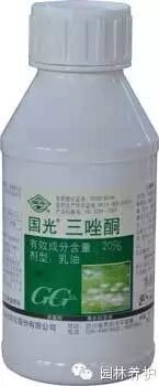 (2)发病初期:喷施国光20%三唑酮乳油1000倍液进行治疗。间隔7-10天一次,连用2-3次。