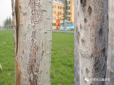 主要发生在树干枝条上,表现为干腐和枝枯两种类型。
