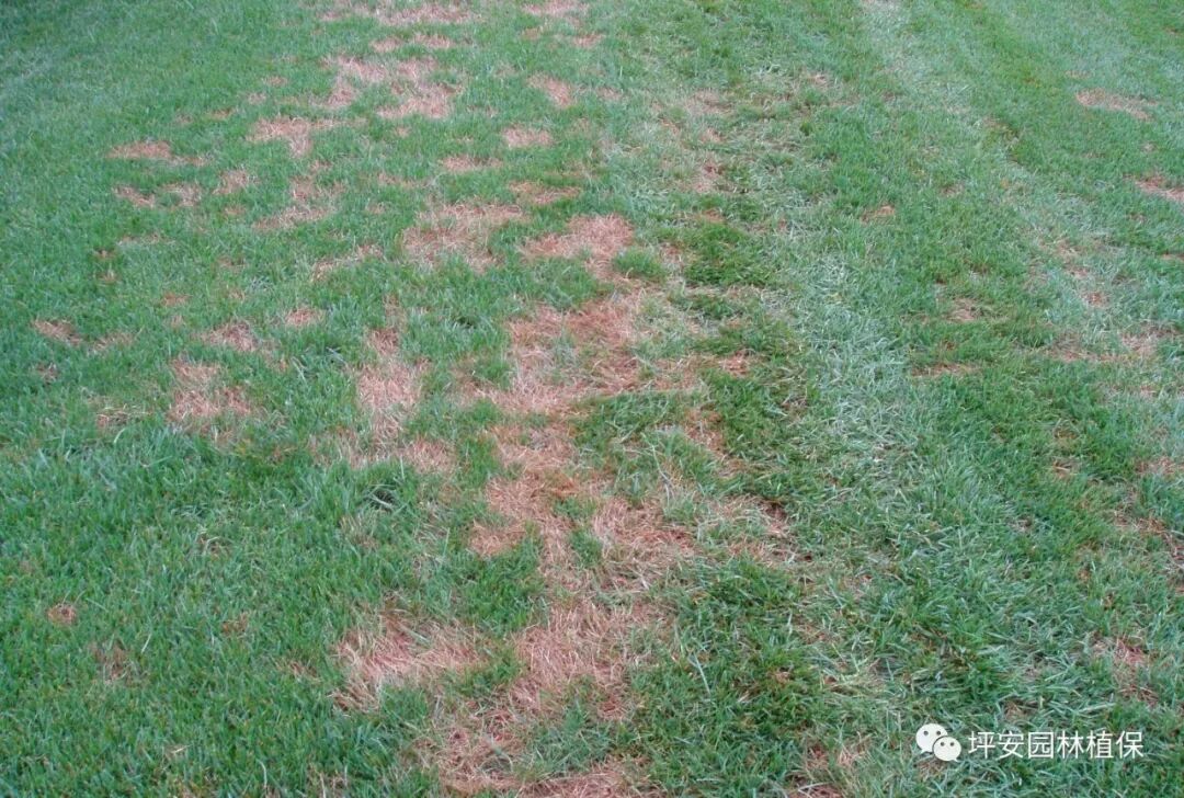 2.此病害发展很快,在条件允许的情况下,24小时内就会损坏大片草坪。