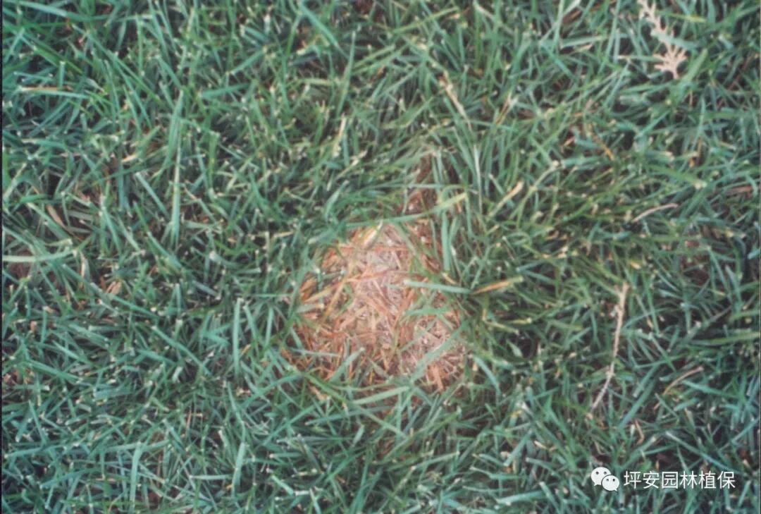 3.草坪上突然出现直径2-5cm的圆形黄褐色枯草斑。