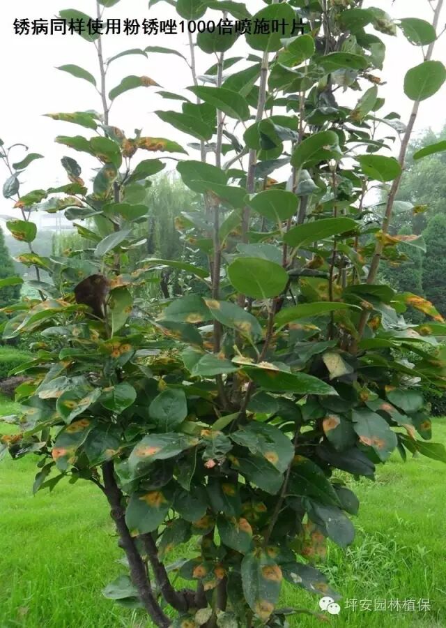 | 锈病 | 发病部位出现明显的桔黄色至深褐色的粉状、疱状物或毛状物等 | 高温高湿是发病的主要条件,丛枝过密,通风不良有利发病。 | 月季、美人蕉、黑松、樱花、草坪等。 | 减少氮肥施用量,加强修剪,增加透气性,结合粉锈唑1000倍喷施叶片。 |