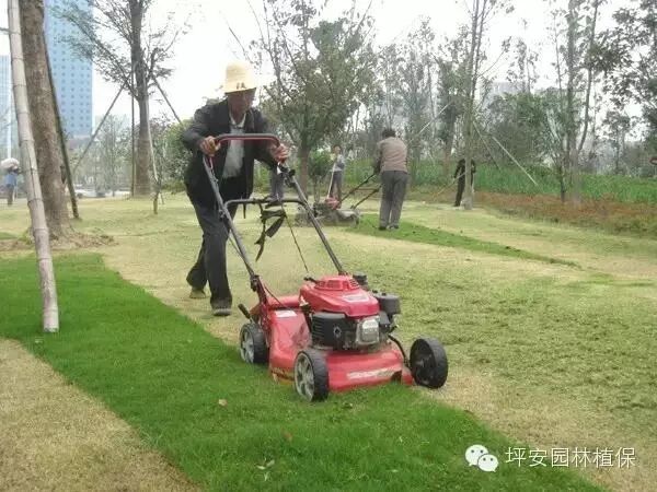 2、每次修剪时,要保证剪草机刀片锋利,以免草坪叶片被撕裂拉伤,影响草坪的美观性及滋生细菌。修剪后及时喷施绿盾、广菌灵等杀菌剂,避免通过修剪伤口感病。