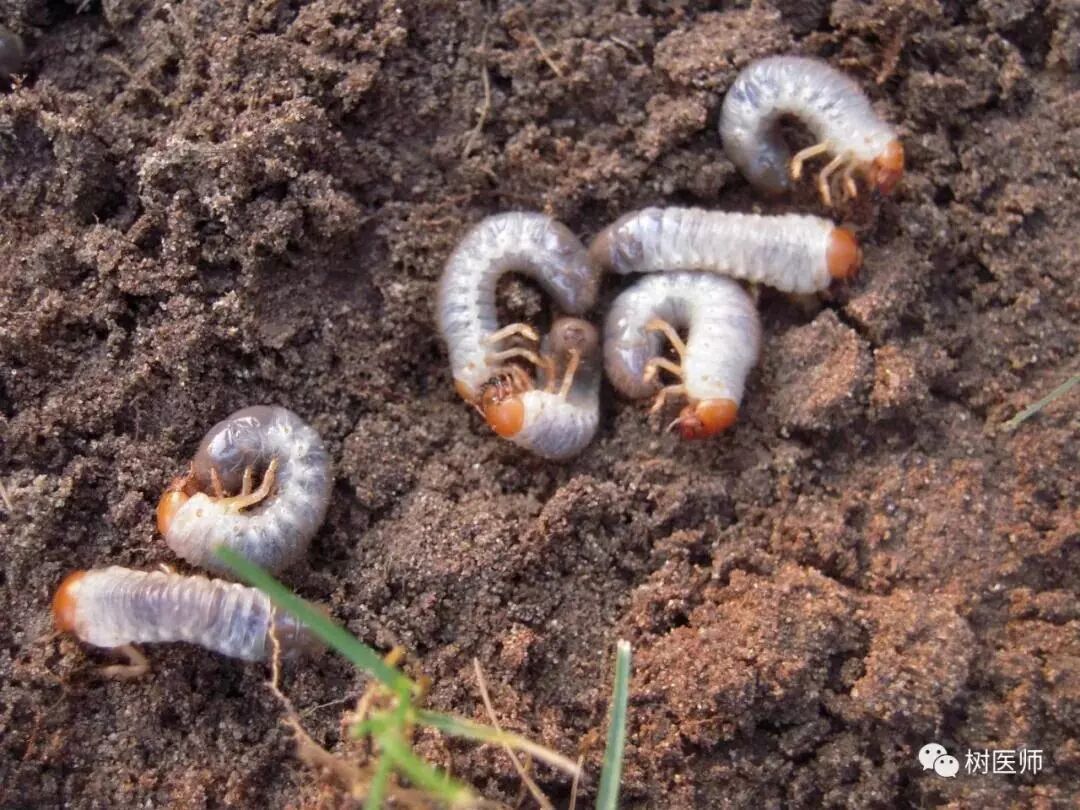 蛴螬主要危害草坪草根部,危害后草坪很容易被提起。蛴螬引起的枯黄解决方法: