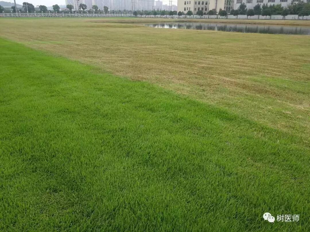 在养护过程中少施氮肥,在夏季尽量不要施尿素。如有施肥需求建议喷施绿润等叶面肥,一旦发现病害及时喷施草坪喷克菌、腐霉定、草病消等草坪专用杀菌剂,建议间隔5-7天重喷一次。
